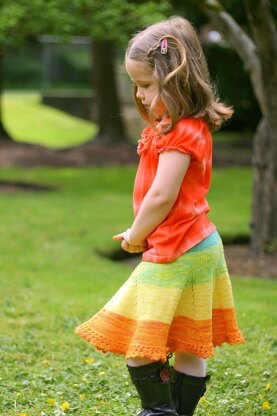 The skirt is knit entirely in the round from top down. It begins with a provisional cast on, which is used to allow for a knitted on waistband.