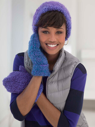 True Blue Hat and Mittens in Lion Brand Homespun Thick & Quick - L40056
