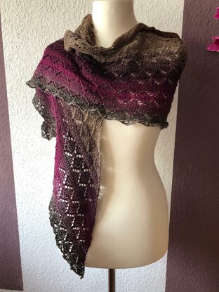 Tolles Tuch für laue Sommerabende! Es passt zu Jeans und T-Shirt genauso gut wie zur feinen Garderobe. Hier wird mit kurzen Reihen in der Mitte begonnen und mit Lochmuster und Perlmuster weitergearbeitet. Und fast im Handumdrehen ist euer neues Tuch fertig.
