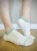 Worked cuff down, these shortie socks have a foldover cuff with a short row ankle tab that prevents them from slipping down in your sneakers. Your socks keep a low profile but you can still show off a fun little pop of color.