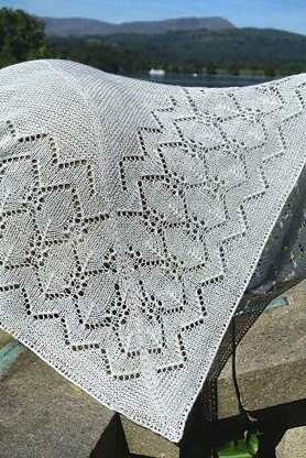 The shawl is knit from the top down starting with garter stitch tab. From there garter stitch body is knitted flat with increases on either side of centre stitch and on both edges on every RS row to get triangular shape. After completing body of shawl floral lace pattern is worked and then the piece is finished off with 2 stitch i-cord edge. The pattern is written and charted. The size can be adjusted , instructions are given.