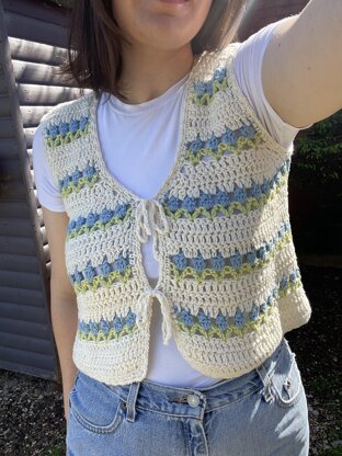 Crochet pattern to create my flower garden vest, using the tulip stitch. Such a cute piece to wear alone in summer or layer it up for cooler days!