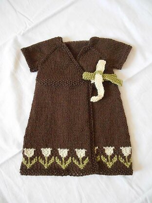 Tulipan is a crossover dress, knitted from the top down in one piece. The bottom hem is adorned by a delicate garland of tulips, easy to work.