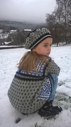 The tunic Tulla is worked from the top and down. This makes it easier to lengthen the body and the sleeves. It has pockets in the front, and a upper back button closure. A matching Beret pattern is also inclosed. Very cute and warm. Perfect for those colder fall and winter days.