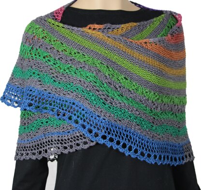 When I first got my hands on the gorgeous shawl-striping yarn by Caterpillargreen Yarns, I knit it into the top-down triangular shawl that it is meant to be. But after that, my mind began to wonder – what would happen if I broke the rules and tried other shawl scapes for the yarn? Well, the yarn works just as wonderful as for triangular shawls! Tulpan (Swedish for tulip) is the third in a series of shawls using Caterpillargreen yarn for shawls that are not triangular. All stitch patterns are written out as well as charted.