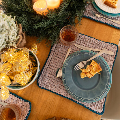 Tunesian Crochet Placemat Cingoli in Hoooked Ribbon XL Lurex and Hooked Eco Barbante - Downloadable PDF