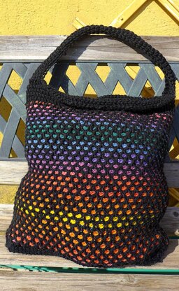 Impress everyone with this trendy market bag in fascinating “stained-glass” effect (reminding of “Moroccan tiles” in regular crochet), obtained with layers of black in the foreground against a colourful background. This is Tunisian crochet worked “in the round”!