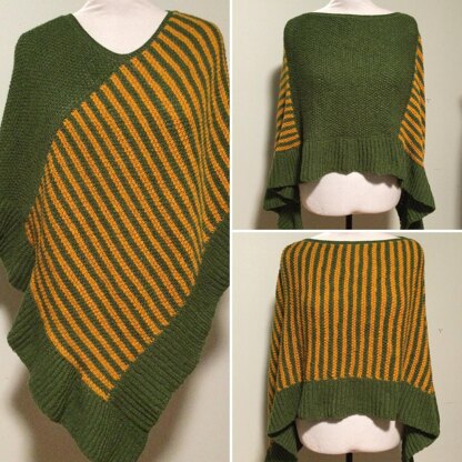 To make the poncho using two-colors as shown, you'll need approximately 1000 yds in one color and 1800 yards in the second (more dominant) color.