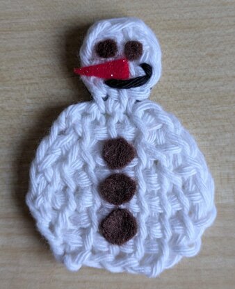 This cute little snowman is made with Tunisian crochet stitches. Felt has been used to decorate the snowman. This could be a perfect little addition to your Christmas tree.