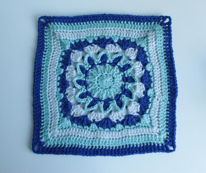 The tension is 6.5 cm across the motifs after finishing round 2.