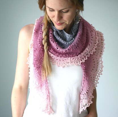 Originally designed for the Yarnover Truck Yarn Club with a fantastic gradient yarn from Apple Tree Knits, Turri (Latin for in the tower) is a crescent-shaped shawl inspired by the styling of Rapunzel in the movie Tangled. Knit from the top down starting with just a few stitches, increases are performed on every row to give the shawl its shape. A scalloped lace pattern repeats down the length of the shawl, ending with a pretty picot bind off. Turri is a knit perfect for passing the time: the lace is involved enough to not be boring, but simple enough to set down and easily pick back up when, say, you need to get your cookies out of the oven, or you also happen to be playing chess with your pet chameleon.