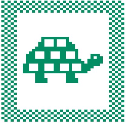 Hand-designed turtle dishcloth pattern. All of my patterns are free-drawn and converted to a pattern on knitting graph paper. I never use knitting pattern creation software to design my patterns. One skein of sugar n cream yarn on size 4 (US) needles is used to create each dishcloth.