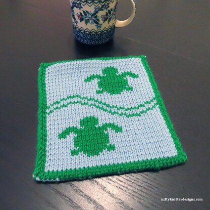 Decorate your kitchen with this cute turtle potholder! Double knit, the potholder is reversible, with opposite colors on the reverse side. Use color changing yarn for interesting color combinations or solid yarn for a more classic look.