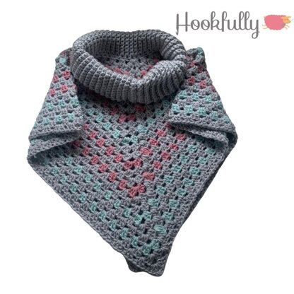 This kids poncho crochet pattern can be made for children aged 3 to 8 years old. The crochet poncho has a turtleneck collar and a granny stripe design. The kids clothing pattern is an easy skill level project and it is made in one piece with no sewing.