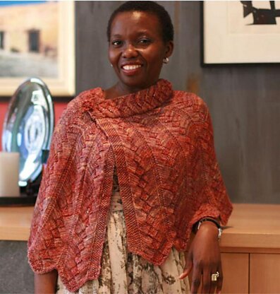 Nothing says Tuscany like easy elegance with an artistic flair. Knit flat from the bottom up, this graceful capelet is composed of panels of vertical diamonds separated by seed stitch. Fingering weight yarn lends fluidity to these gently curved "petals" and the yarn is held double for stability at the neckband, knit separately. Choose between a beaded version with serious sparkle or an unadorned version where the texture speaks for itself. Accessible directions make it easy to create your own personal masterpiece.