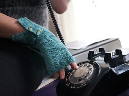 A longer, refined pair of fingerless mitts in three sizes (S/M/L) to knit in a houndstooth textured fabric with buttoned cuff. Feminine in a pastel colorway, they easily transition to a tailored favorite when knit in a neutral or undyed shade. Choosing a luster wool yarn or a blend with some silk will enhance the subtle fabric texture. This project is a relaxing, easy to work knit that produces a sophisticated finished look.