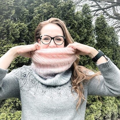 My Favorite time of day is when the sun starts to set behind the mountains and whispers of pink streak across the darkening sky. I love how as the sun dips lower the blues and the pinks melt together, making it difficult to see where one begins and the other ends. The colors of twilight were the inspiration for this beginner cable and lace cowl. The lace is created through a two-line repeated pattern. So, if you are new to lace and would like to try it out, this is the perfect pattern for you. There are detailed instructions for creating the cable stitch included within the pattern. I hope you enjoy knitting this soft and cuddly cowl.