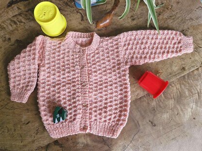 Pretty cardigan, easy to knit and the fairy-dust sparkle in the yarn is loved by the young and old(er) alike!