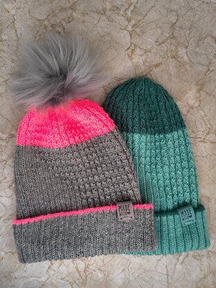 The 'Twisted Incline Beanie' is a cute, textured hat that takes the classic look of a ribbed beanie and gives it a little cabling twist! It features the evergreen 2x2 ribbing embellished by some twisted cables arranged in diagonal lines which give it a captivating look while still keeping the pattern very easy to memorize. The addition of a pop of color to the cast-on and the tip of the hat makes for an eye-catching beanie that you will simply love to wear!**Construction:**The beanie is worked in the round from the bottom up. It starts with a tubular cast-on method that includes a color change, then the cuff is worked in 2x2 ribbing and folded. The body is worked in the same ribbing with the addition of some easy 1x1 twisted cables. After a final color change at the top of the hat, the crown is worked with simple decreases. Lastly, if that’s your style, top the beanie with a big pom-pom.