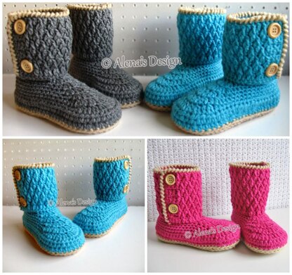 Includes PATTERN for the Two-Button Children's Booties in five sizes:
