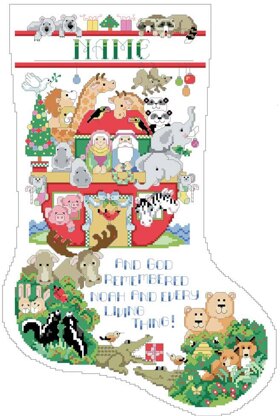 Designed by: Linda Gillum. Inspired by Noah’s legendary ark, this colorful stocking features the smiling faces of God’s creatures! Mix and match with all of our classic Kooler nursery décor.