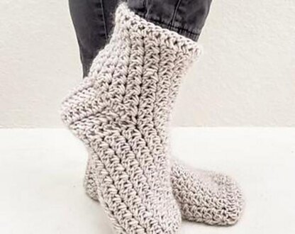 Pattern Description: The Tyne Slippers are a comfortable, seamless construction, with a nice arched heel to help them fit your feet snug and not slip off your foot. They easily fit over a pair of socks. A quick and cozy project! A lovely stitch texture is made using 2 basic and easy stitches.