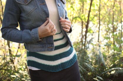 Sizes (actual bust, intended to be worn with some negative ease): 26 (30, 34, 38, 42, 46) inches You will need: 5 (6, 6, 7, 7, 8) balls in White (MC), 1 (1, 1, 2, 2, 2) of Spruce (CC1), and 1 of Pistachio (CC2)