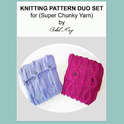 Ula Duo set of Chunky Yarn Vintage Textured Country Cottage Style Cushions Knitting Pattern by Adel Kay