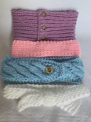 Just the thing to spruce up any wardrobe! Headbands are now very much in style and are worn all year round! These are also good to keep your hair back when wind is blowing and you are outdoors. Make a set of these for a great gift for teens to moms, even grandmas will love them! Everyone will want a set of these headbands! Easily knit with worsted weight yarns, knitting needles, US # 9.