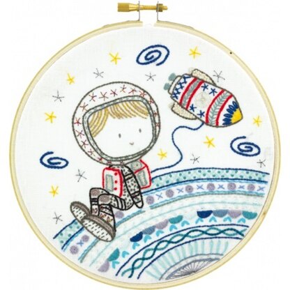 Fabric colour: white. Fabric dimensions: 21x21cm. This sweet entry-level embroidery kit contains everything you need except the hoop to complete the project.