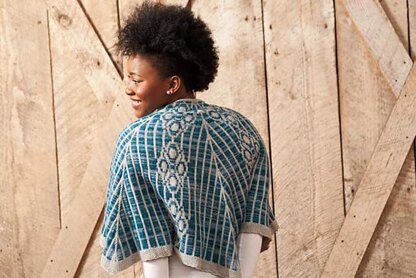 Unalakleet is a stranded shawl worked seamlessly from the top-down. For this shawl, the stranded stitches are worked back and forth (flat, using stranded knitting and stranded purling), and intarsia twists are used to connect the colorwork to the seed stitch edging along each side of the shawl. To facilitate the stranded purling, the purl side rows mirror the colorwork on the knit side. Finally, the transition from the colorwork body to the seed stitch bottom edging creates a slight ruffle for added interest.