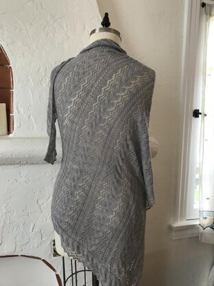 This lovely laceweight shawl, worked as a wedge from the bottom up, incorporates a modifcation of one of my favorite vintage lace patterns, Print of the Wave. The half wave edging is worked as a knitted on edging to bind off the top of the shawl.