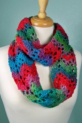 This gorgeous cowl uses only 1 skein of yarn (270-280 yards of worsted weight yarn), making it an economical project. It is made with a simple ripple pattern, which is quick to memorize and easy to crochet. The beautiful colors of the yarn make it perfect to wear with any outfit! Made with an easy care acrylic yarn (Red Heart Boutique Unforgettable), this may become your favorite cowl for years to come!