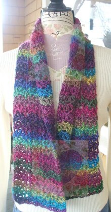 Double crochet clusters create this pretty scarf. Red Hearts Unforgettable makes this soft and warm without being bulky. Using only one skein this is a very affordable project.