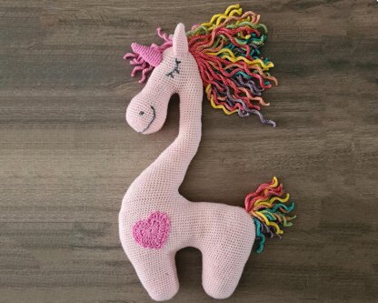 With this pattern you crochet the body of the unicorn in one piece. You crochet all accessories separately and sew them on after crocheting. Crocheted with Stone Washed and crochet hook size 3 mm, the unicorn measures +/- 45 cm.