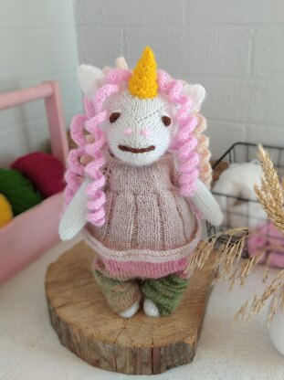 Unicorn knitting pattern. We knit with two pointed needles in a circle. You can knit with circular needles in a circle. It is easy to follow my knitting pattern. Even a beginner can do it. All my knitting patterns are simple. All you need is knitting experience. The toy knitting pattern includes: unicorn knitting pattern, pants, dress.