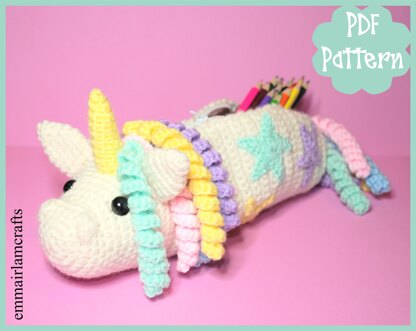 ※ ITEM DETAILS: This listing is for a Unicorn Pencil Case crochet pattern in pdf format, NOT a finished item. Finished pencil case will be approx. 10.5” long and 3” wide when made with specified DK yarn and tension.