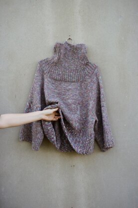 Unicorn pullover is a midi length style knit with oversize turtleneck and 3/4 wide sleeves. Oversize neck is big and wide so it can be worn like one shoulder sweater. It is worked top-down in the Stockinette stitch pattern. Because the sweater body and sleeves are worked straight it can be easily made longer and of course, more yarns should be purchased. Unicorn pullover is a timeless knit that fits well with all clothes for wearing always and everywhere. It is super cozy pullover for wearing at home.