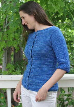 Unintended is a lacy cardigan knit in a luxurious merino/silk/cashmere sport weight yarn: Madelinetosh Pashmina. It is knit from the top down, beginning with the neck ribbing and continuing on to neck short rows and contiguous shoulder seams. The straight, high neckline sets this cardigan apart from more typical crew neck garments. The two fronts and back section are knit separately and joined at the underarms. This lace cardigan also includes top-down set in sleeves, which are picked up from the armhole. Short rows are used to shape the neckline as well as the shoulder caps. This pattern includes instructions for three lengths of sleeves: short, elbow-length and long. The lace pattern at the end of the sleeves rounds out the cardigan for an overall luxurious look.