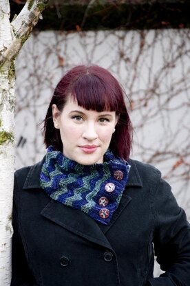 Uprising is a two-color chevron cowl designed in Malabrigo Rastita for a Design Challenge with Cory of IndieKnits. The pattern is simple to knit, it highlights the yarn and provides a perfect showcase for some special buttons.​