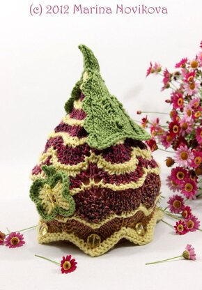 Original designed "Gnome Flower" hat is knitted in two colored lace;