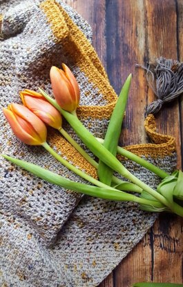 A very simple simple textured unisex shawl, this is crocheted from the bottom up to make this easily adaptable to any size. Tension is not necessary .the pattern is easy to remember making it a great meditative piece . The large triangle can be folded in half to create a smaller diagonal textural striped neckerchief .