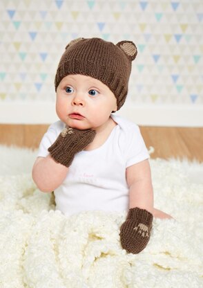This ‘little bear’ set is guaranteed to melt your heart! The pattern combines the designer’s love of woodland knits and novelty baby hats, and the mitts add a cute finishing touch.