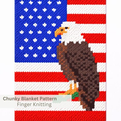 Chunky Blanket Pattern. Finger knitting.USA Patriotic Eagle Chunky Blanket Pattern