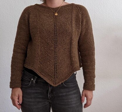 DESCRIPTIONThe VLove Sweater has an eye-catching, interesting shape, without being too special to wear every day. It’s designed with a clever but simple construction, with the V-shape of the neck and front panels is created by increases and decreases only. The VLove Sweater is worked top-down, with decorative eyelet lines alongside raglan and front and back increases. It’s worked mostly in stockinette stitch but never gets boring, as you work decreases and increases every other round. We love to see your knits on social media. Please use #VLOVESWEATER and #ivnknit