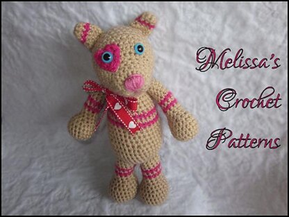 You will need… All yarns used are Red Heart Super Saver Solids Buff yarn for main color Shocking Pink yarn for stripes and heart Small amount of light pink yarn for nose 12mm safety eyes 3.25mm crochet hook (Size D) Valentine’s ribbon (optional) Fiberfill Stuffing Yarn Needle Sewing Pins to hold pieces in place before sewing (optional) Stitch Markers
