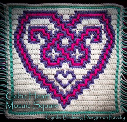 You will need 2-4 colors of yarn - the sample image uses approx. 1.5 oz of white for the background, .5 oz of pink for the interior of the heart, .5 oz of light turquoise for the border & .5-.75 oz of purple for the heart outline. You could do this pattern in 2 colors if you want to keep it simple, however the instructions include using all colors seen in the sample image.