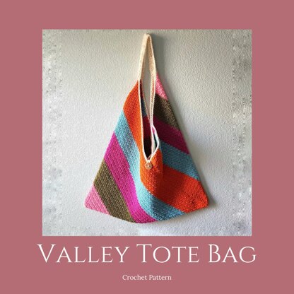 This pattern is an origami style tote bag with one wide strap and can be made into 2 sizes (small and large). The pattern is written in US terms. Please feel free to share your finished tote on Instagram, tagging #valleytotebag. Do not sell, change or claim this pattern as your own.