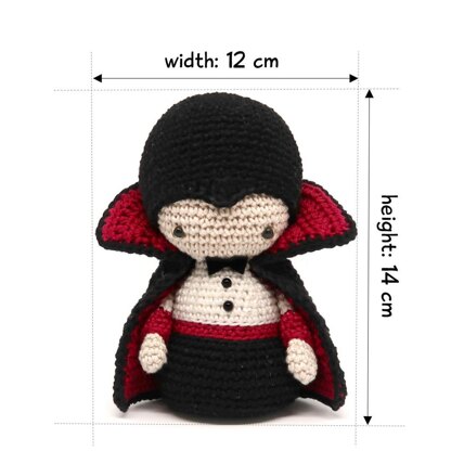 MEASUREMENTS With the yarns used in this project, the vampire doll measures 14 cm (5.5 inch) tall, 12 cm (4.7 inch) wide.