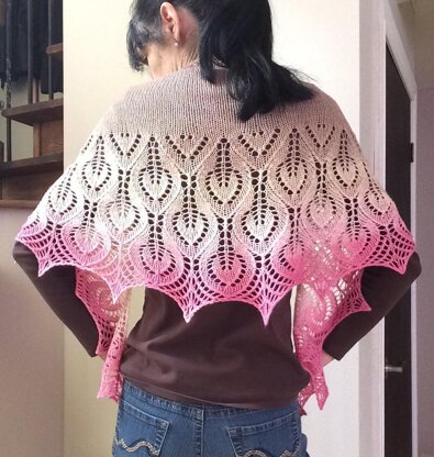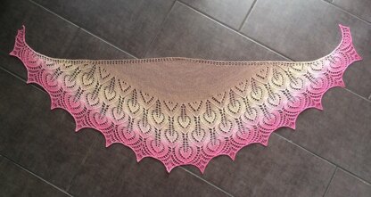 This shawl measure 55’’ long and 20’’ wide, after blocking.